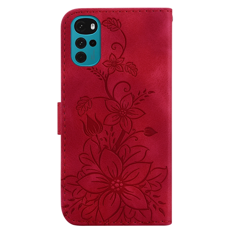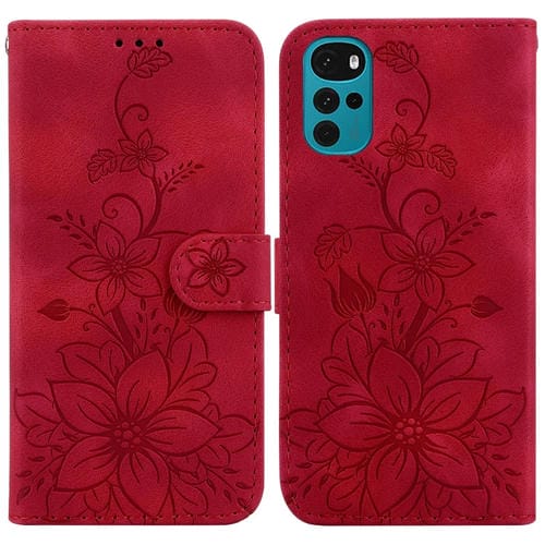 - 1x Funda para Motorola Moto G22 Lily de Cuero en relieve (Rojo)