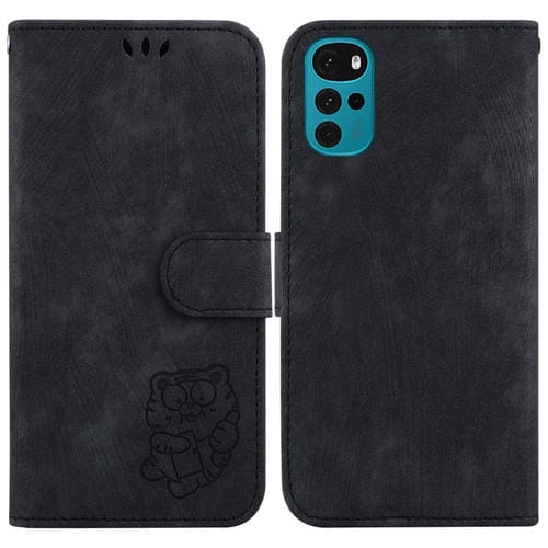 Funda de Cuero en Relieve para Motorola Moto G22 Little Tiger (Negro)