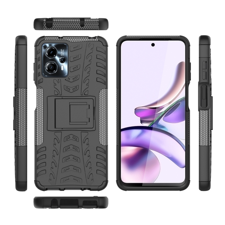Funda para Motorola Moto G23 Tire Texture TPU + PC con Soporte (Negro)