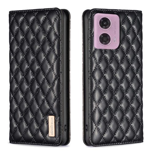 Funda para Motorola Moto G24 con Tapa de Cuero Magnético y Diseño Diamond Lattice (Negro)