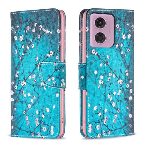 Funda de Cuero para Motorola Moto G24 con Patrón de Dibujo de Colores (Flor de Ciruelo)