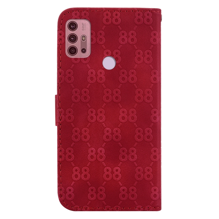 Funda de Cuero en Relieve para Motorola Moto G30 G10 G20 G10 Power Doble 8 (Rojo)
