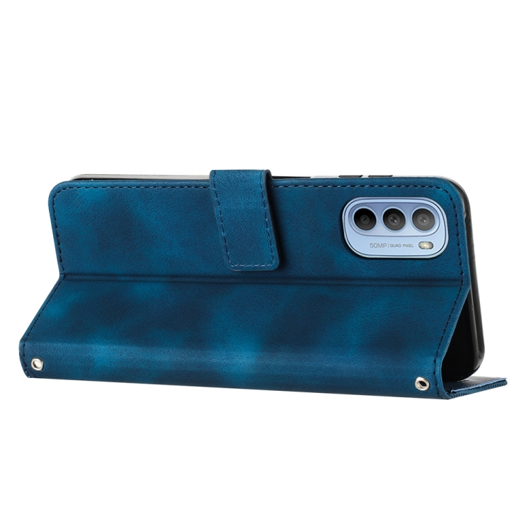 La Funda de Cuero para Motorola Moto G31 y G41 Dream Triangle con cordón (Azul) es un Accesorio diseñado para ofrecer protección integral y funcionalidad añadida a estos modelos específicos. Fabricada con materiales resistentes como PU y TPU, esta Funda protege el dispositivo contra arañazos, suciedad, roturas y desgaste habitual. Su diseño incorpora un Soporte que permite visualizar la Pantalla en posición horizontal con comodidad, además de contar con ranuras para Tarjetas y un compartimento para efectivo, facilitando el Almacenamiento práctico y seguro de objetos personales. El acceso a todos los Puertos y Botones del Teléfono es Completo sin necesidad de retirar la Funda, y su cordón tipo mensajero permite un transporte sencillo y cómodo.