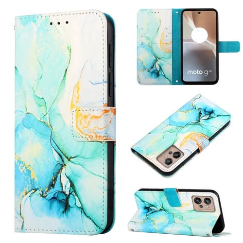 Funda de Cuero con Tapa para Motorola Moto G32 Pt003 Patrón de Mármol (Verde)