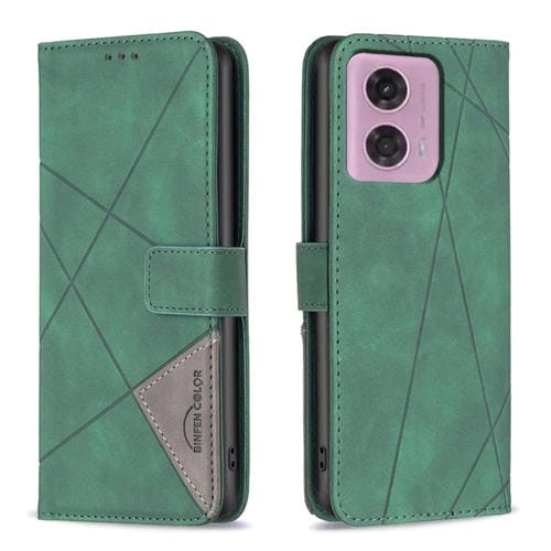 Funda para Motorola Moto G34 5G de Cuero con Textura de Rombo y Hebilla Magnética (Verde)