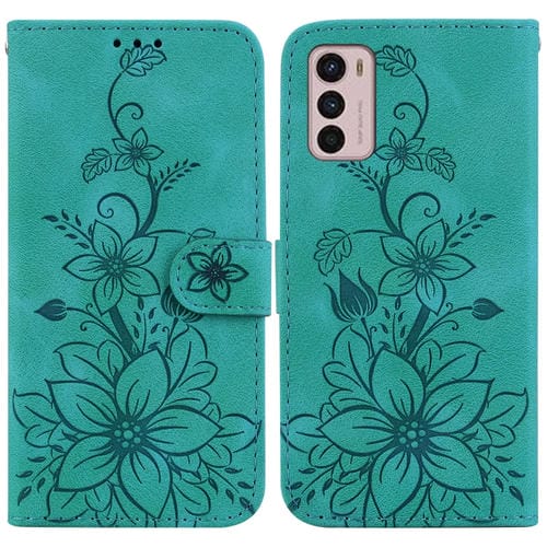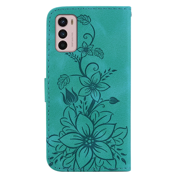 - 1x Funda de Teléfono Motorola Moto G42 Lily Cuero en Relieve (Verde)