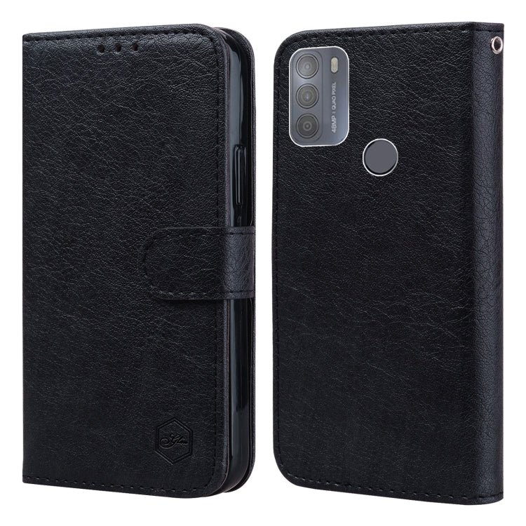 Funda para Motorola Moto G50 con textura de cuero aceitoso PU + TPU (Negro)
