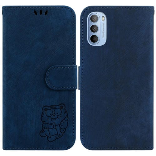 For Motorola Moto G51 Little Tiger Embossed Leather Case (Dark Blue)