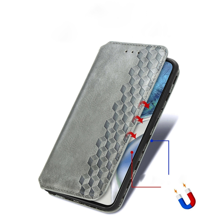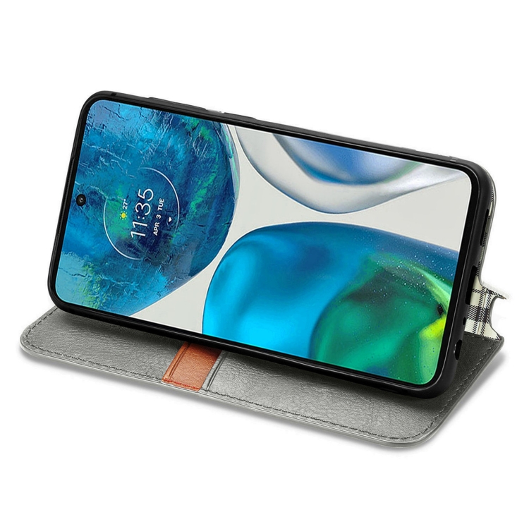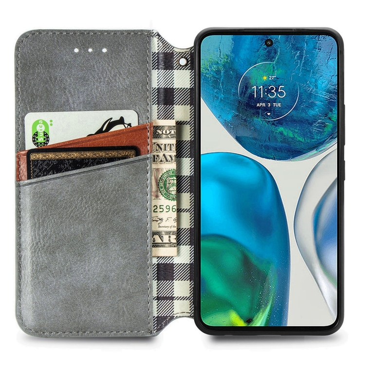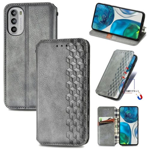 Funda para Motorola Moto G52 Cubic Grid de Cuero Magnético Prensado (Gris)