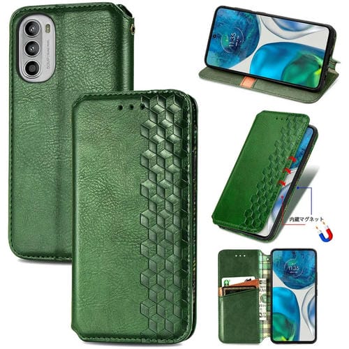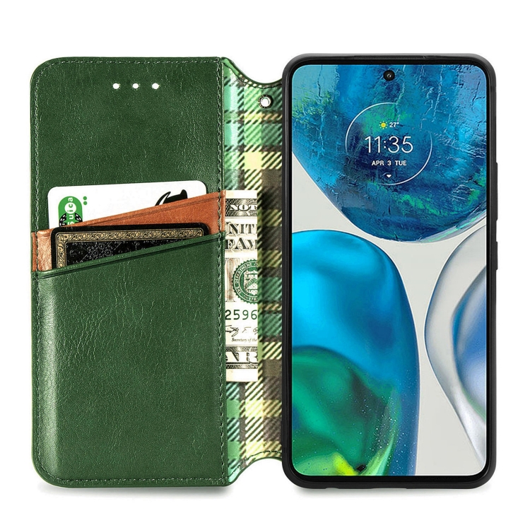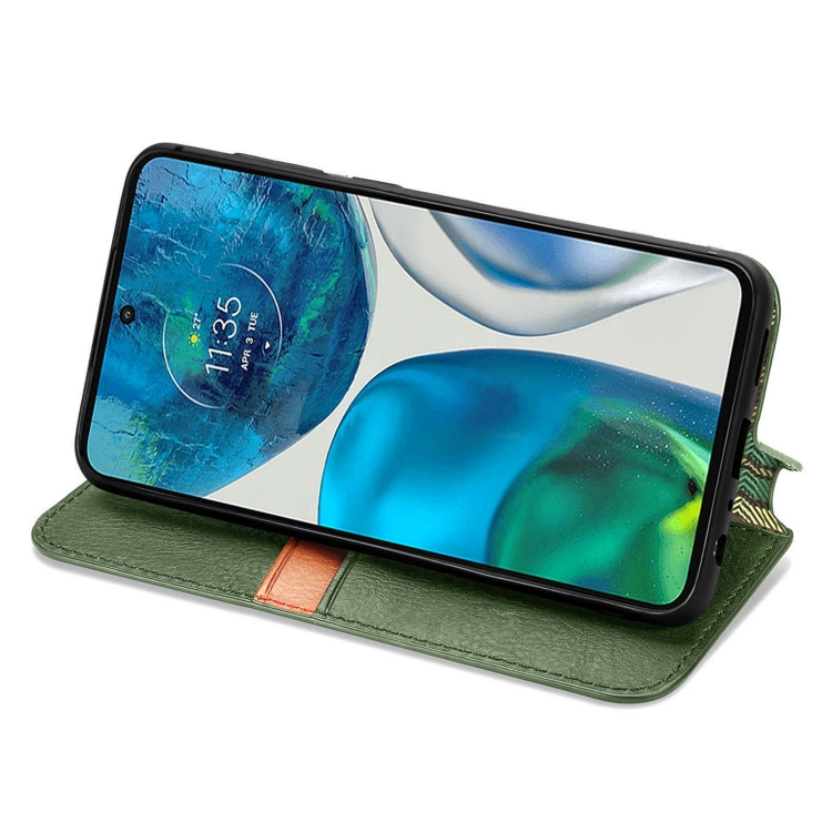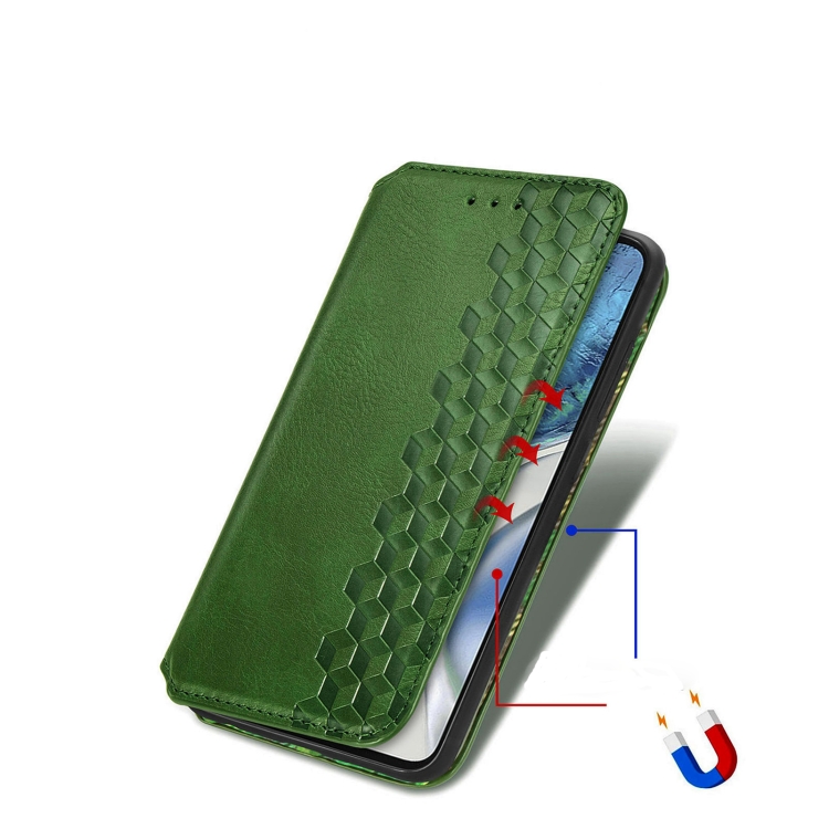 Funda para Motorola Moto G52 Cubic Grid Cuero Magnético Prensado (Verde)
