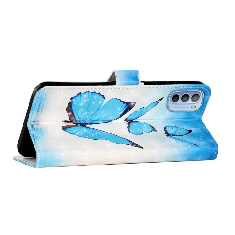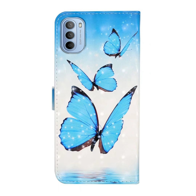 Funda de Cuero para Motorola Moto G52 con Dibujo 3D en Relieve al Óleo (3 Mariposas)
