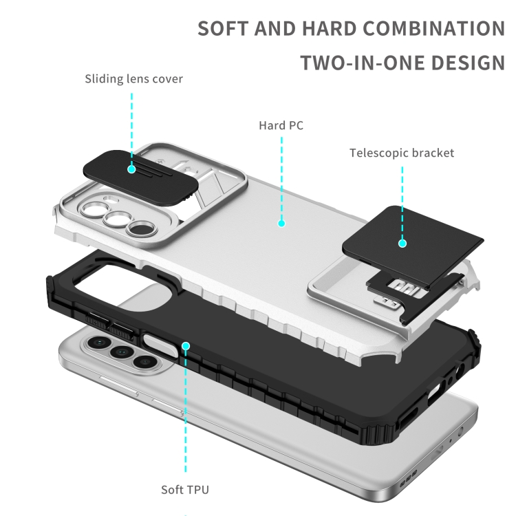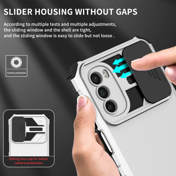 - 1x Funda para Motorola Moto G52 con Soporte Estereoscópico Deslizante y Camshield (Blanco)