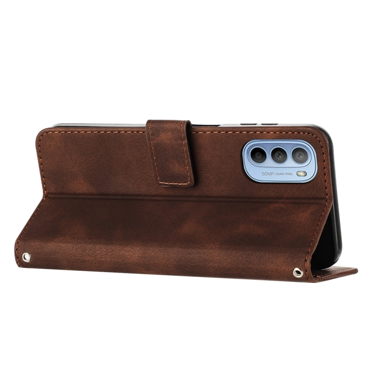 La Funda de Cuero para Motorola Moto G52J JP Versión Dream Triangle con cordón (Marrón) está diseñada para ofrecer una protección integral y funcionalidad avanzada a este modelo específico. Fabricada con materiales resistentes como PU y TPU, esta Funda protege el dispositivo contra arañazos, suciedad, roturas y el desgaste habitual. Su diseño incorpora un Soporte integrado que permite visualizar la Pantalla en posición horizontal con comodidad, además de incluir ranuras para Tarjetas y un compartimento para efectivo, facilitando el Almacenamiento práctico y seguro de objetos personales. Asimismo, garantiza el acceso Completo a todos los Puertos y Botones sin necesidad de retirar la Funda, y su cordón de mensajero facilita su transporte diario.