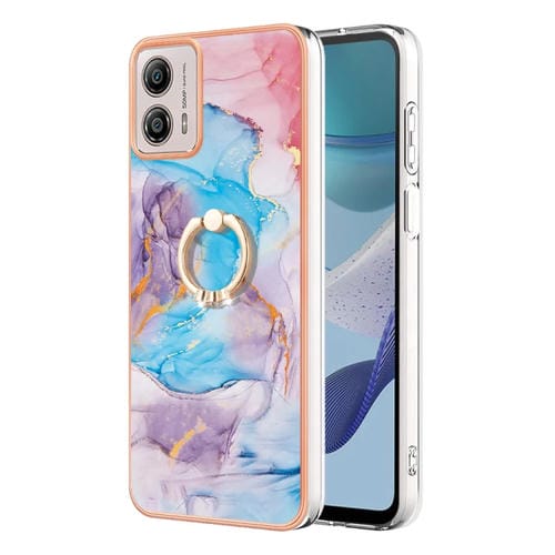 - 1x Funda TPU Galvanoplastia IMD con Anillo para Motorola Moto G53 5G (Mármol Azul)