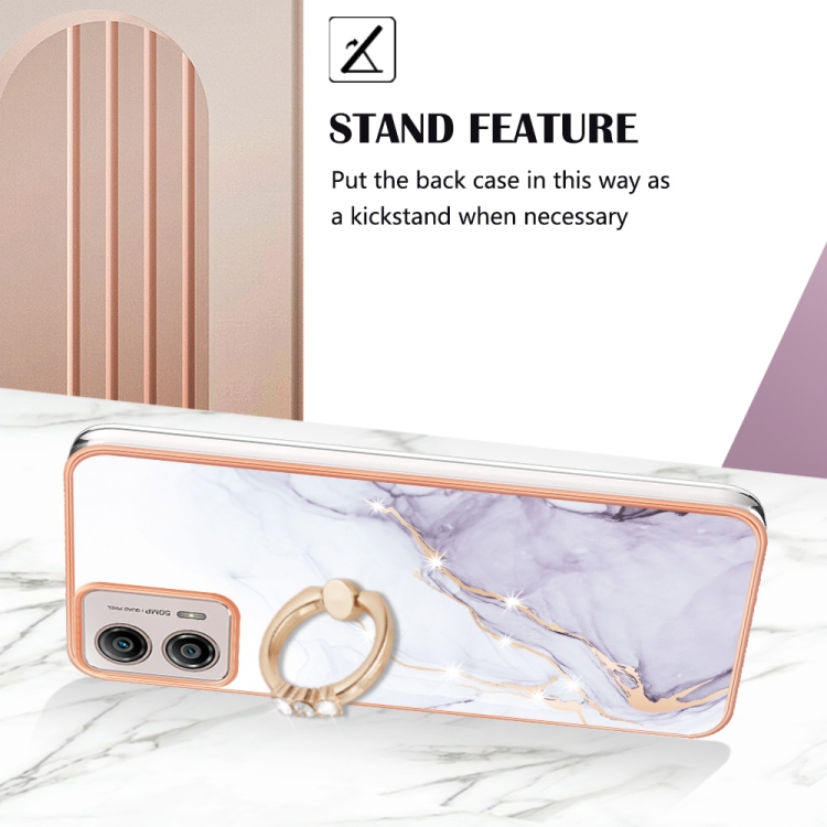Funda para Motorola Moto G53 5G Galvanoplastia Mármol Imd TPU con Soporte para Anillo (Blanco)