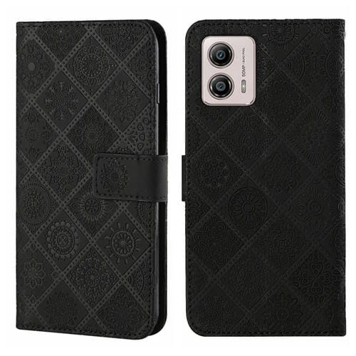 Funda de Cuero para Motorola Moto G53 con Patrón en Relieve Estilo Étnico (Negro)