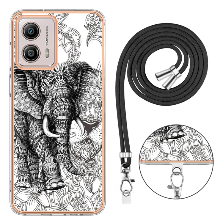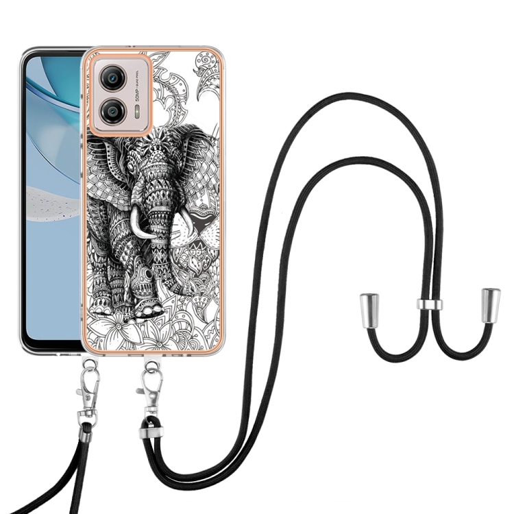 - 1x Estuche para Teléfono Motorola Moto G53 G13 G23 IMD Doble Cara Galvanoplastia con Cordón (Totem Elephant)