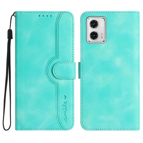For Motorola Moto G53 / G13 / G23 Leather Phone Case Skin Feeling Heart Pattern Cover (Light Blue)