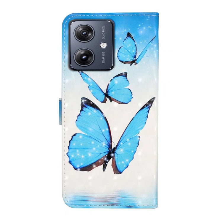 Funda de Cuero para Motorola Moto G54 5G con Dibujo 3D en Relieve al Óleo (3 Mariposas)