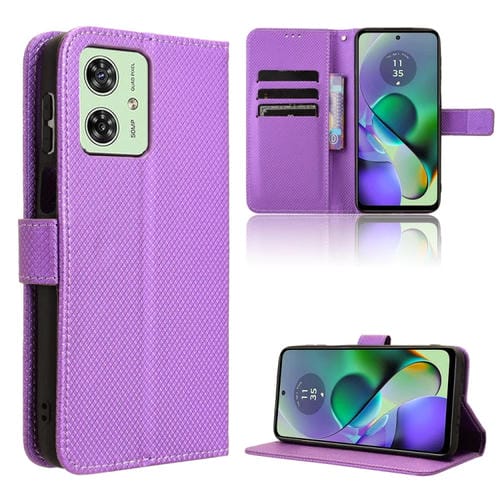- 1x Funda de Cuero para Motorola Moto G54 5G con Textura de Diamante (Púrpura)