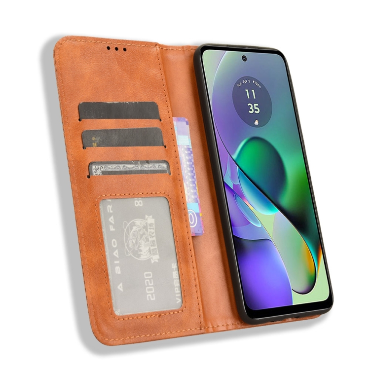 - 1x Funda para Motorola Moto G54 5G de Cuero con Textura Retro y Hebilla Magnética (Marrón)
