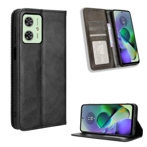 - 1x Funda para Motorola Moto G54 5G de Cuero con Textura Retro y Hebilla Magnética (Negro)