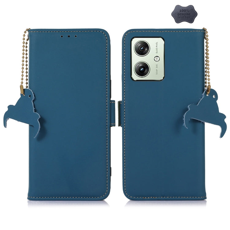 Funda para Motorola Moto G54 5G de Cuero Genuino Magnética con RFID (Azul)