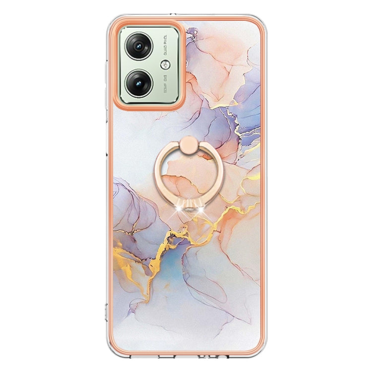 Funda para Motorola Moto G54 Imd TPU con Galvanoplastia y Anillo (Mármol Blanco)