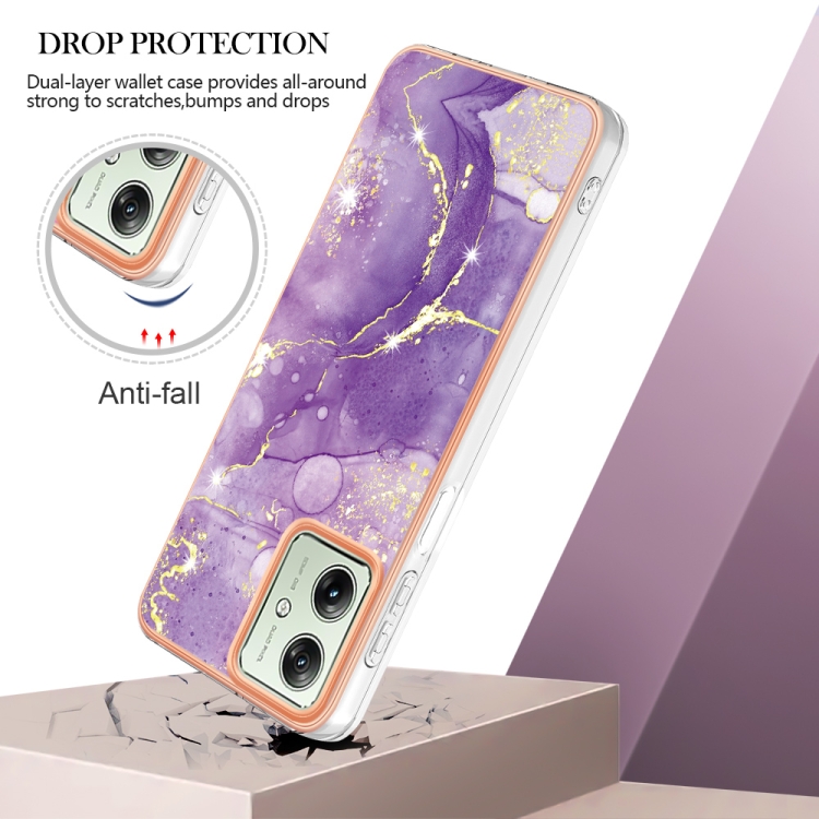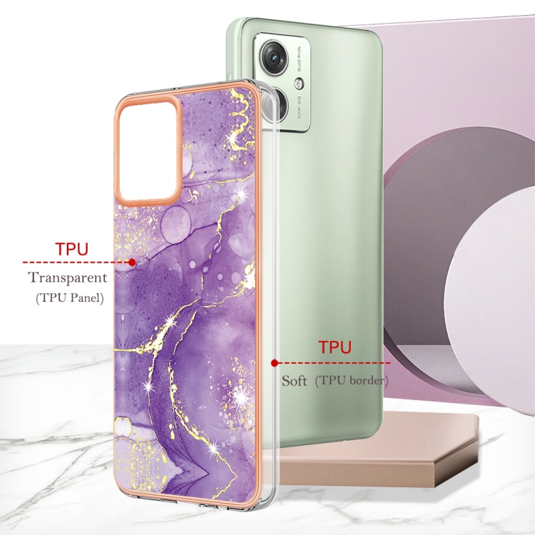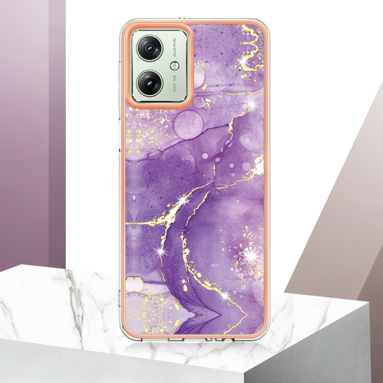 - 1x Estuche para Motorola Moto G54 IMD Doble Cara Mármol Galvanizado (Púrpura)