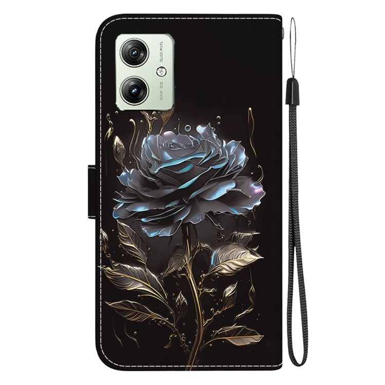 - 1x Funda de Cuero para Motorola Moto G54 con Dibujo Coloreado y Textura de Cristal (Rosa Negra)