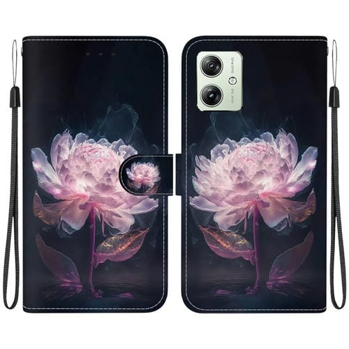 Funda de Cuero para Motorola Moto G54 con Dibujo Coloreado y Textura de Cristal (Peonía Púrpura)