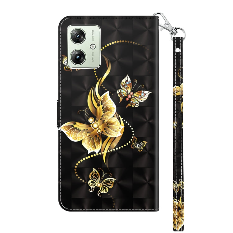 Funda de Cuero para Motorola Moto G54 Pintada en 3D Mariposa Golondrina Dorada