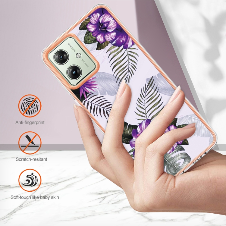 Funda para Motorola Moto G54 Galvanoplastia Imd TPU Flor Morada