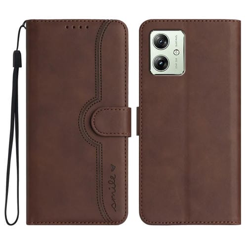 Funda de Cuero para Motorola Moto G54 Global con Patrón Heart Skin Feel (Marrón)
