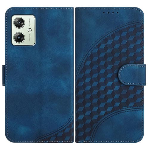 Funda de Cuero para Motorola Moto G54 Global Yx0060 con Relieve y Cabeza de Elefante con Cordón (Azul Real)