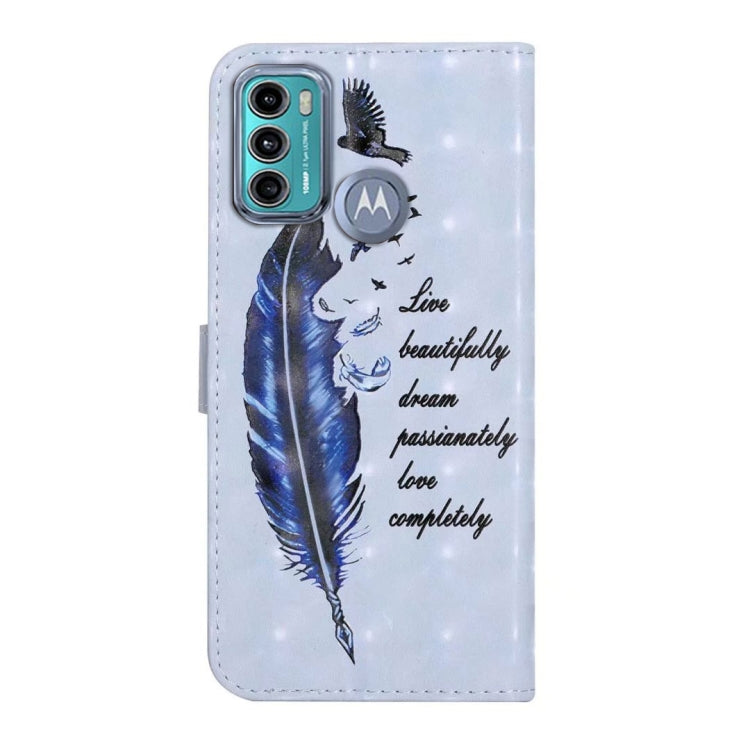 Funda para Motorola Moto G60 y G40 Fusion de Cuero con Dibujo 3D En Relieve de Aceite (Pluma Azul)