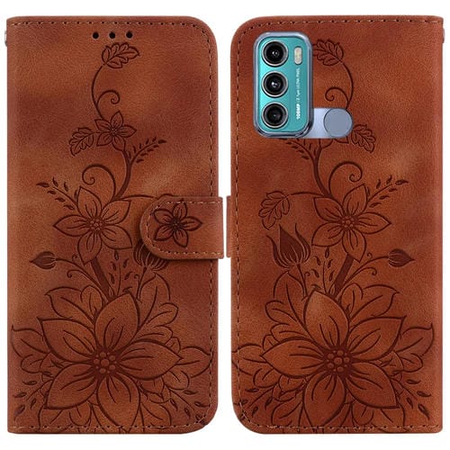 Funda de Cuero Motorola Moto G60 G40 Fusion Lily para Teléfono En Relieve (Marrón)