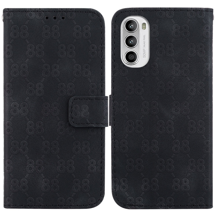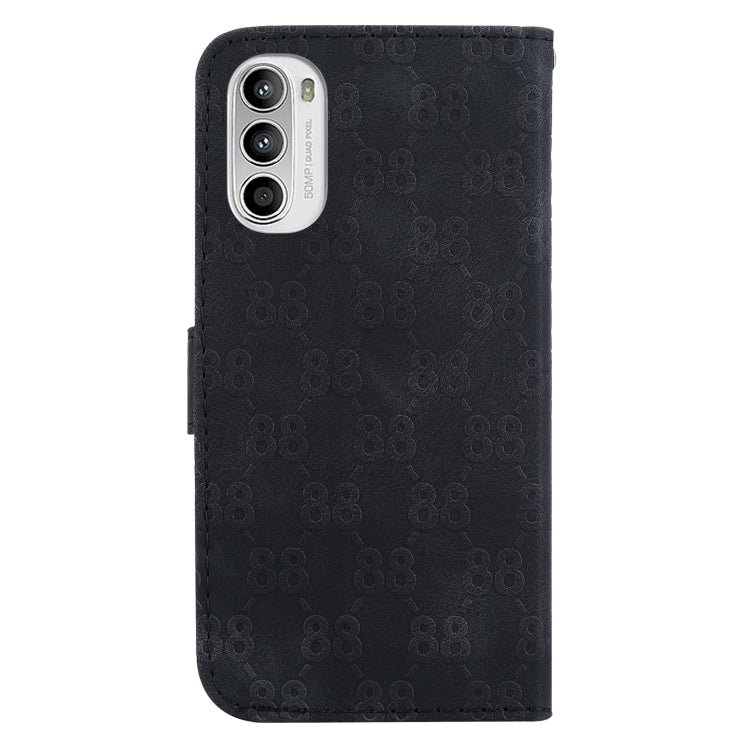 Estuche para Motorola Moto G62 5G de Cuero en Relieve con Doble Forma de 8 (Negro)