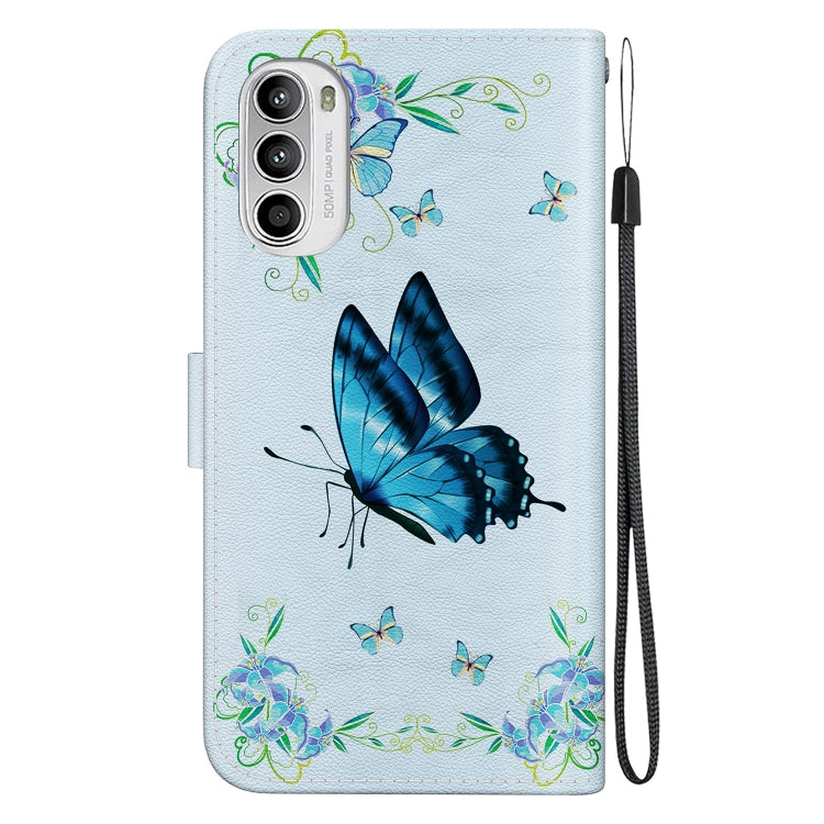 Funda de Cuero para Motorola Moto G62 5G con Dibujo Coloreado y Textura de Cristal (Pensamientos Azules)