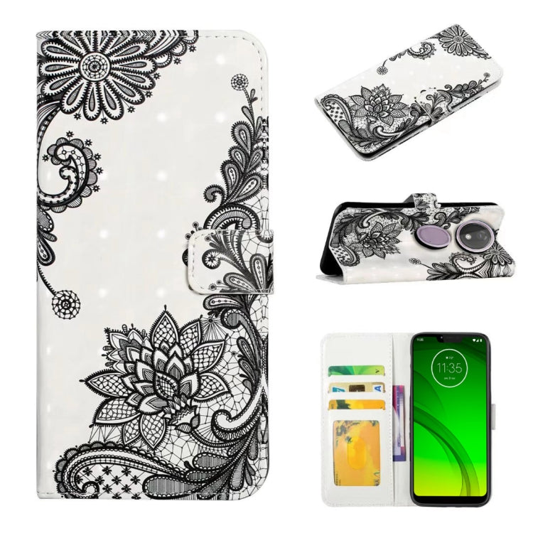 Funda de Cuero para Motorola Moto G7 Power con Dibujo 3D en Relieve (Flor de Encaje)