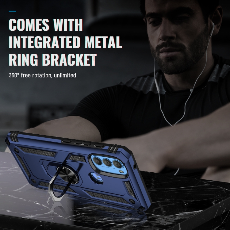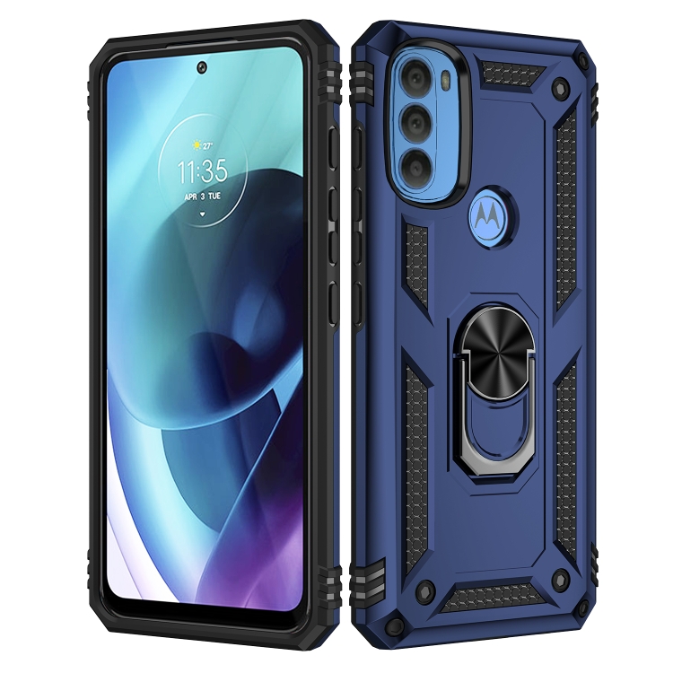 Funda para Motorola Moto G71 5G TPU + PC a Prueba de Golpes con Titular (Azul)