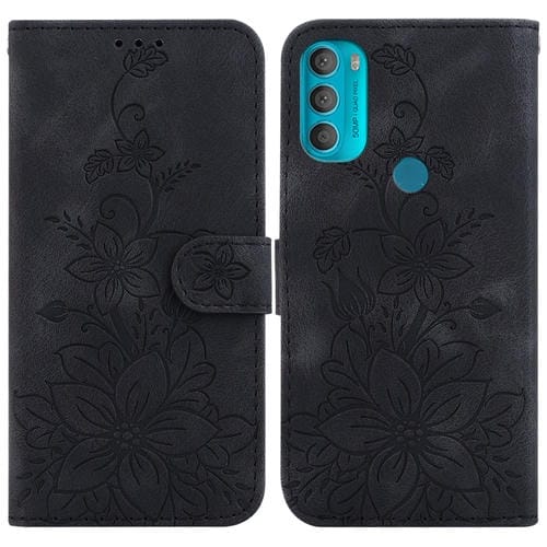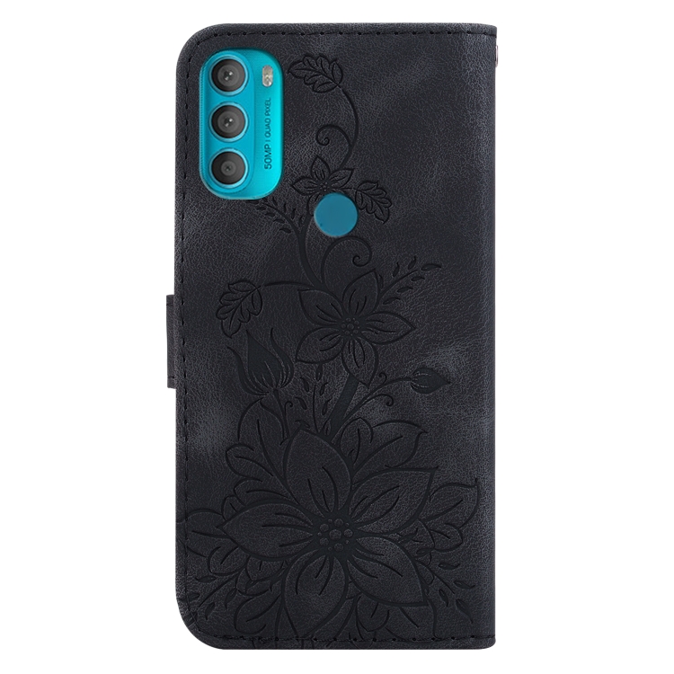 Funda de Cuero en Relieve para Motorola Moto G71 5G Lily (Negro)