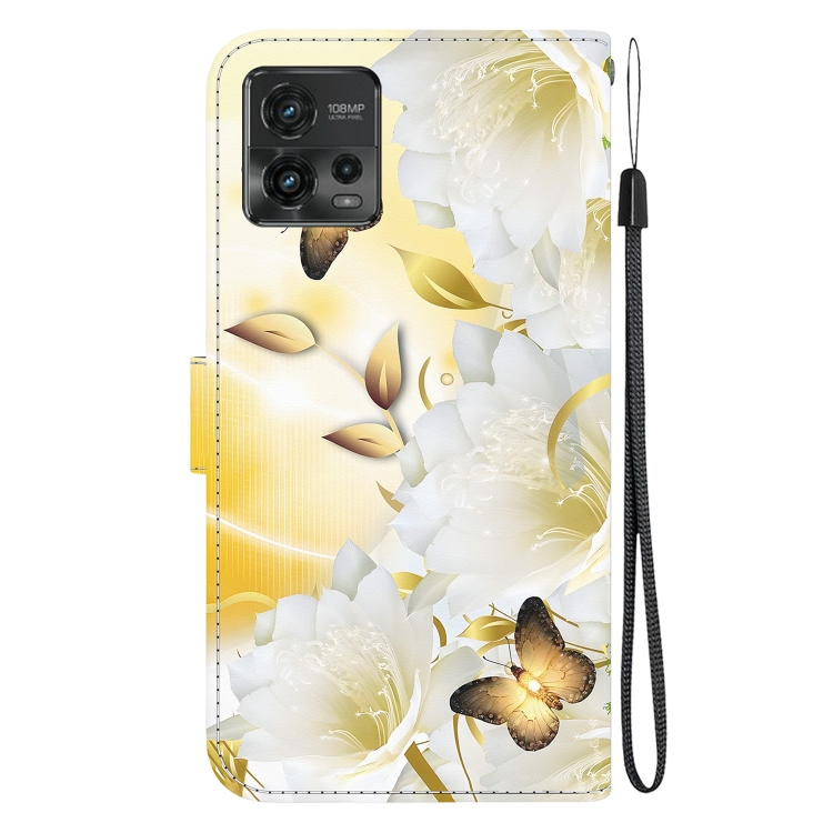Funda de Cuero para Motorola Moto G72 con Dibujo Coloreado y Textura de Cristal (Epiphyllum de Mariposa Dorada)