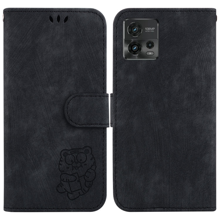 Funda de Cuero para Motorola Moto G72 con Relieve Little Tiger (Negro)