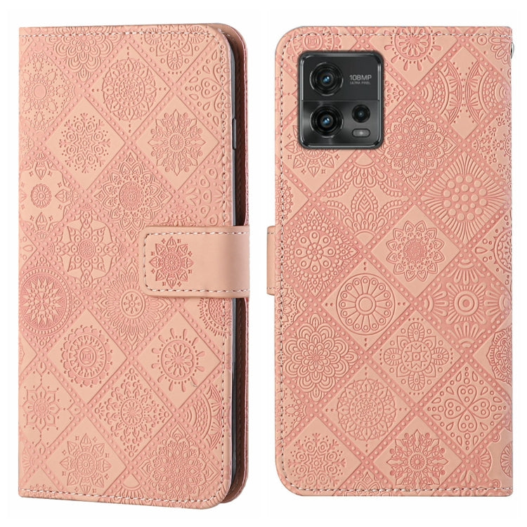 Funda de Cuero para Motorola Moto G72 con Patrón en Relieve Estilo Étnico (Rosa)