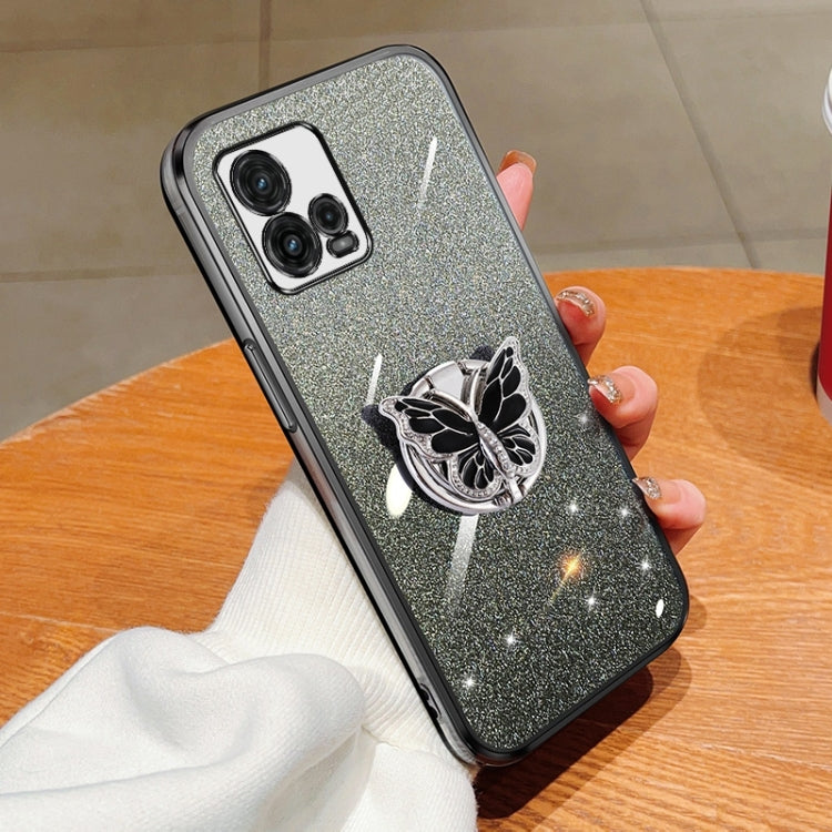 Funda para Motorola Moto G72 de TPU con Soporte de Mariposa y Brillo Degradado (Negro)