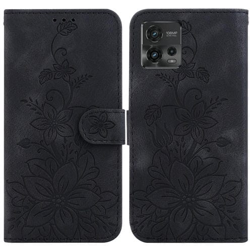 - 1x Funda de Teléfono Motorola Moto G72 Lily Cuero en Relieve (Negro)
