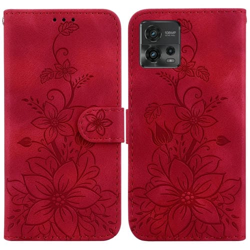 Funda para Motorola Moto G72 Lily de Cuero en Relieve (Rojo)