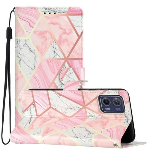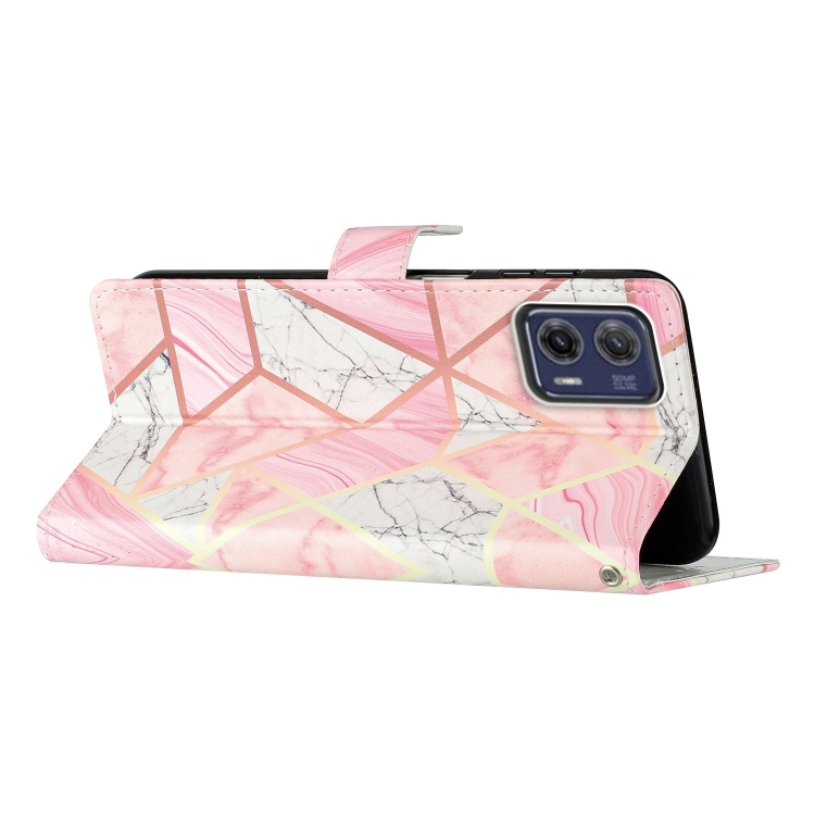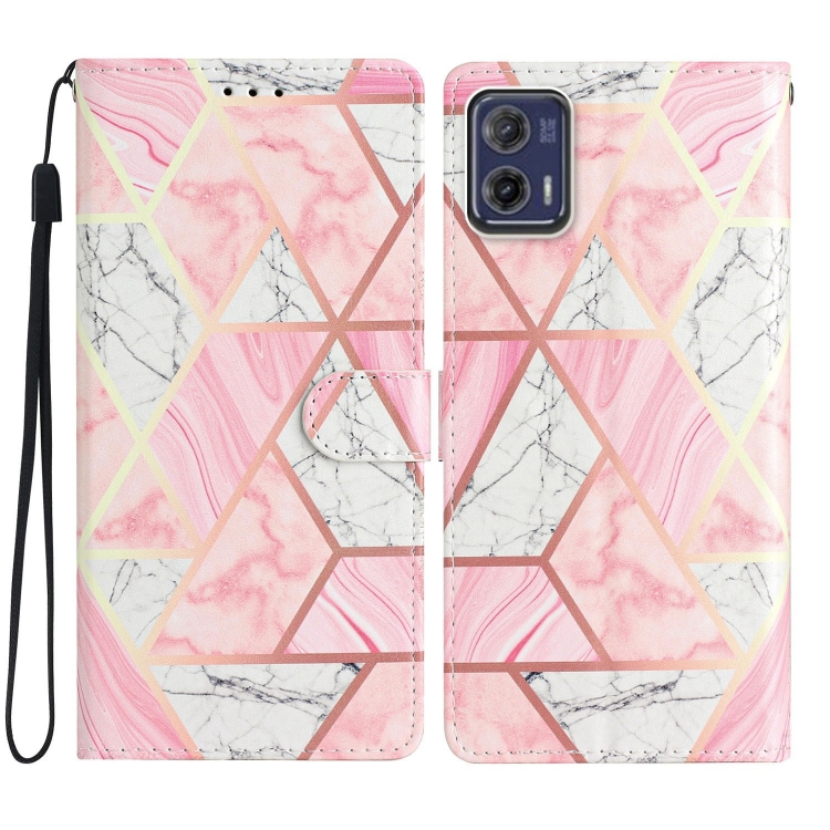 Estuche para Teléfono Motorola Moto G73 de Cuero con Dibujo Coloreado (Mármol Rosa)