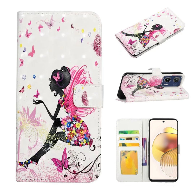 Funda de Cuero para Motorola Moto G73 con Dibujo 3D en Relieve al Óleo (Hada de Flores)
